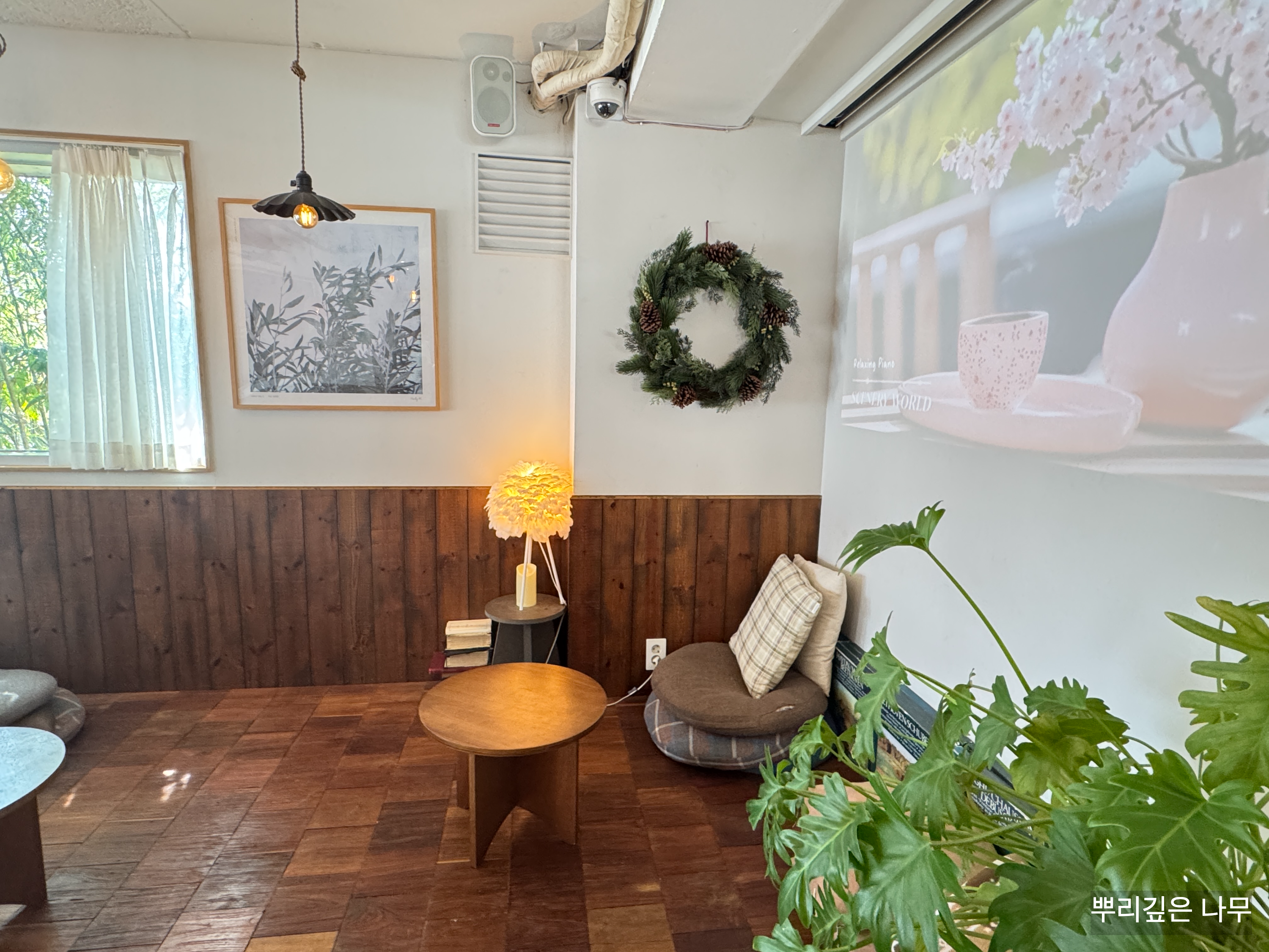 내부 분위기는 생각한거 보다 훨씬 더 디자인이 이뻤어요. 좌석수는 많이는 있는 거 같지 않았어요. 그래도 잘 배치되어서 커피 먹으면서 수다 떨기에도 좋더라고요. 그리고 좌식으로 된 곳도 있었어요.