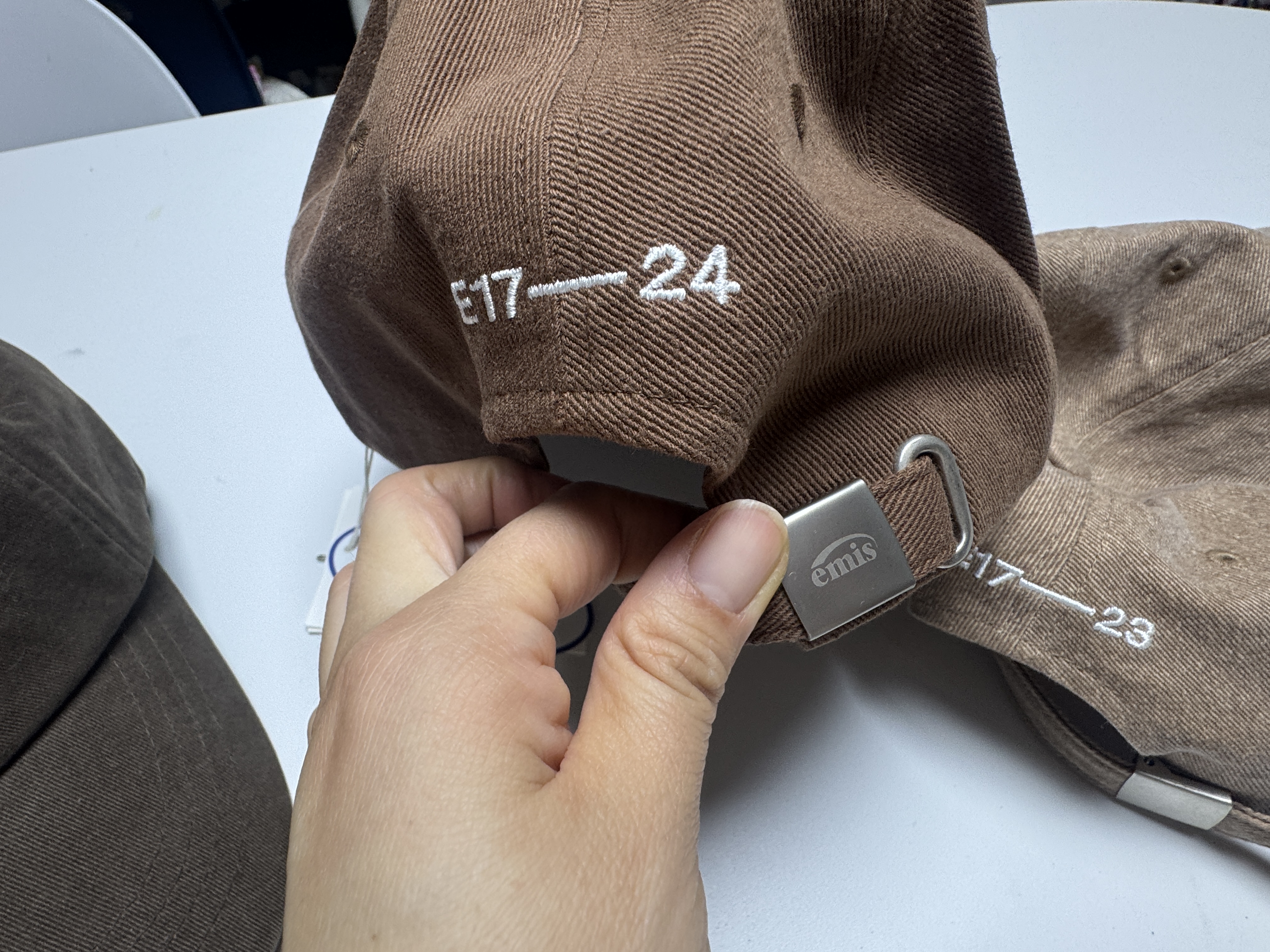 이미스는 17년도에 시작해서 제품이 나온 년도를 머리 뒤에 표시하던데, 특이한 거 같아요. 그리고 23년도랑 24년도가 좀 달라진 건 모자 크기 줄이는 버클이 달라졌어요. 약간 23년도 제품은 약간 헐렁해지기도 하는 거 같아요. 그렇다고 확 풀리는 건 아니지만요.